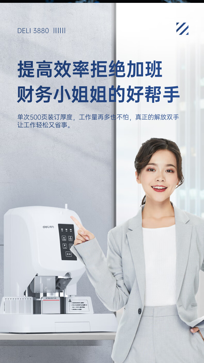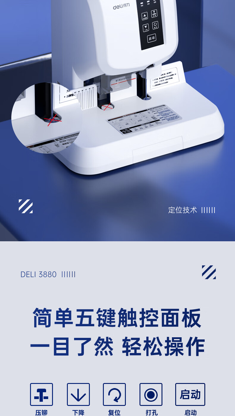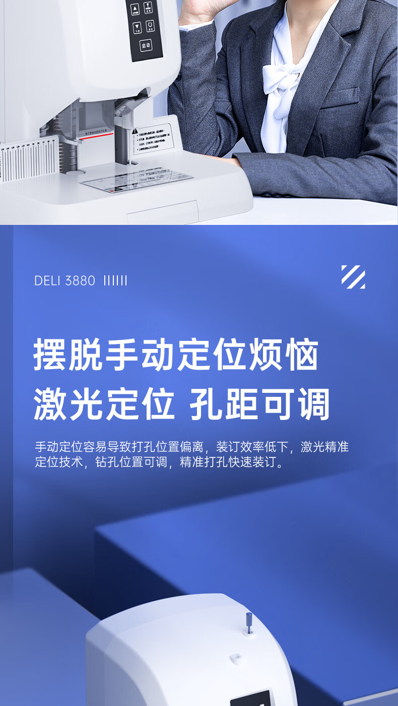 得力3880 激光定位财务凭证自动装订机 标书文案卷宗电动档案打孔