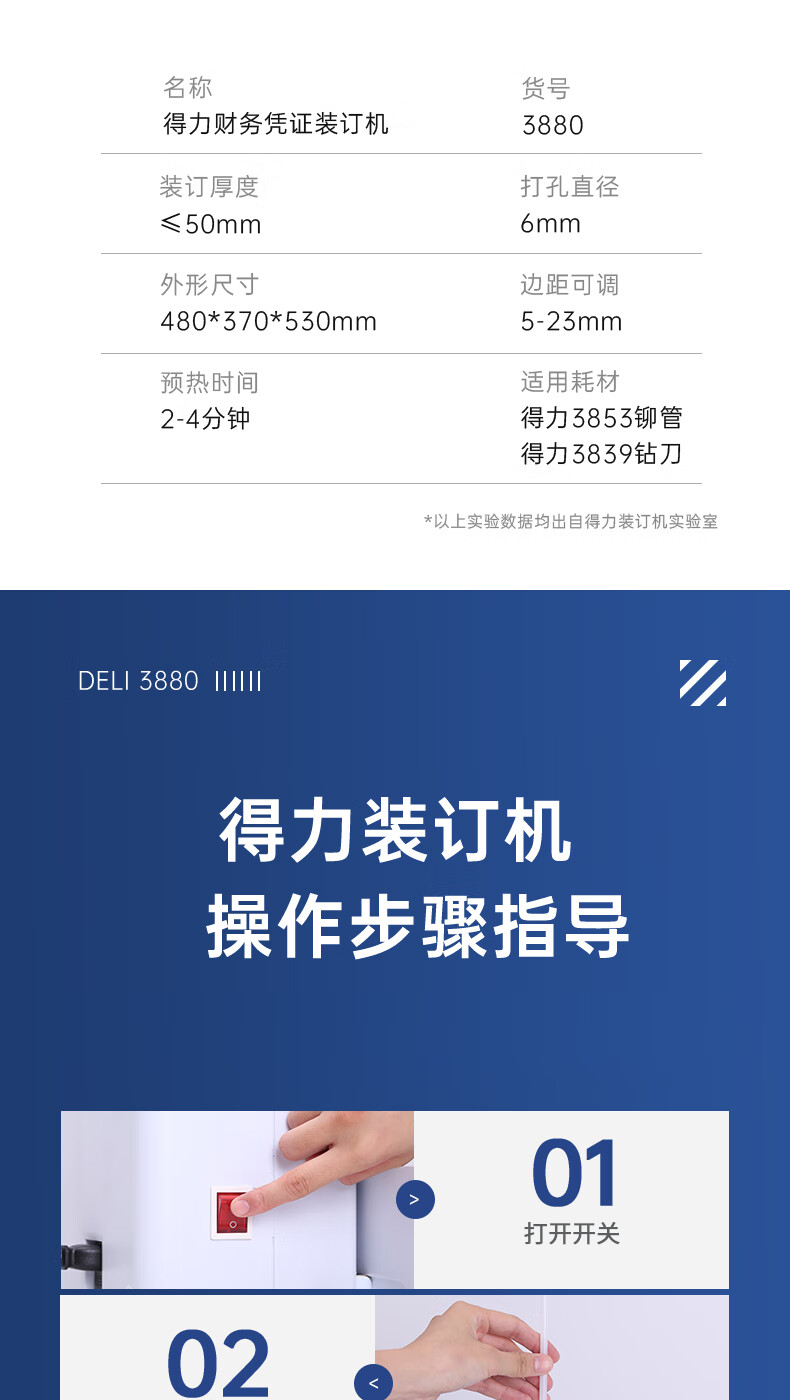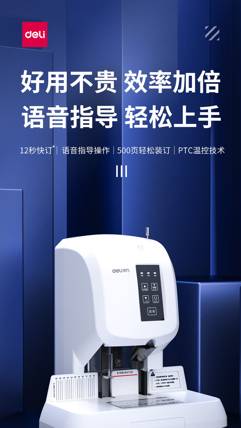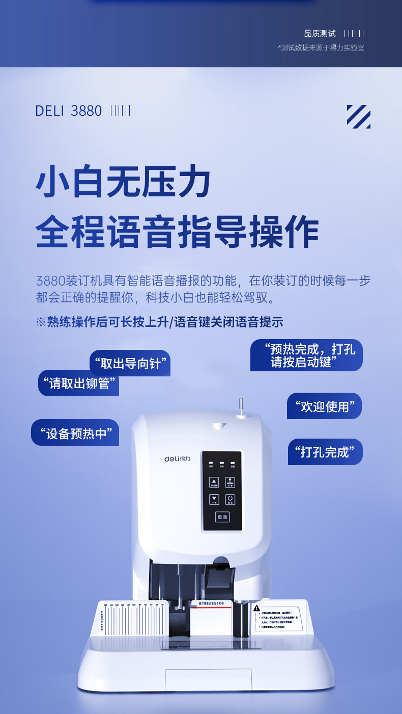 得力3880 激光定位财务凭证自动装订机 标书文案卷宗电动档案打孔
