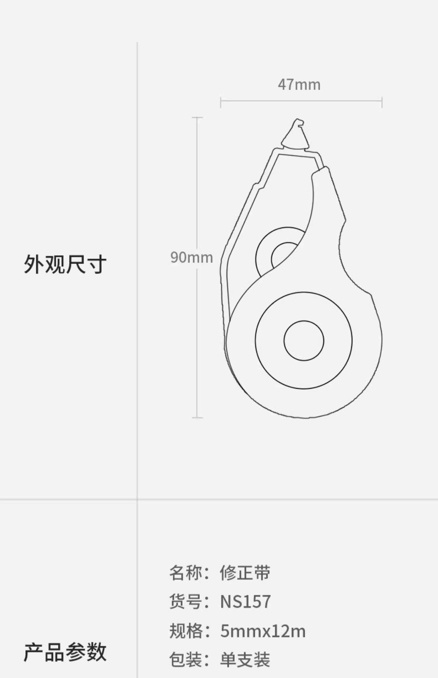 得力NS157 修正带 12米小巧涂改带 改正带 颜色随机1个